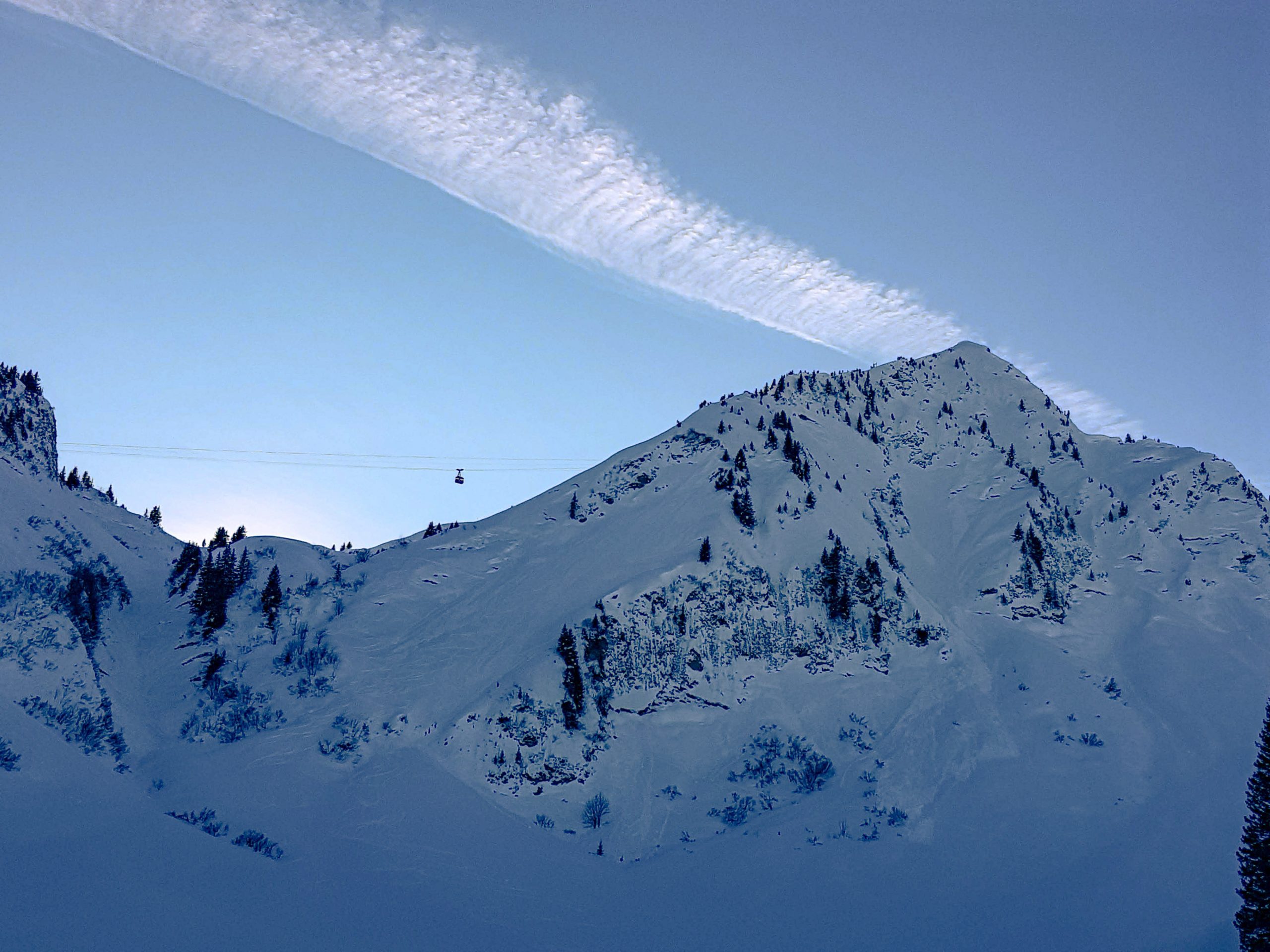 This is a stunning face in good conditions. The classic is hiking up to Reither Kar (-> reference) and picking one of the many lines up there, but even skipping any hike and dropping in from the cable car itself is stunning. It gets tracks, but if you wander off the obvious pitches, you have plenty of snow to play with and ride first lines. Essentially the entire face is rideable, and even entering over the ridge from Reitheralmbahn is an option.